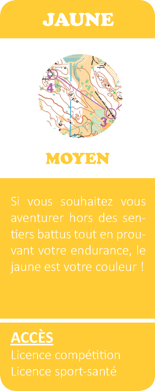 Selon votre licence, vous pouvez courir sur tous les circuits (licence compétition) ou sur les circuits jusqu’au niveau jaune inclus (licence sport-santé).